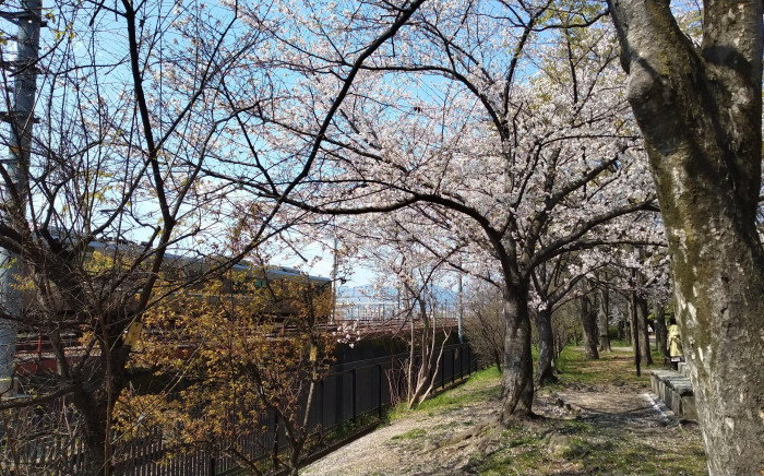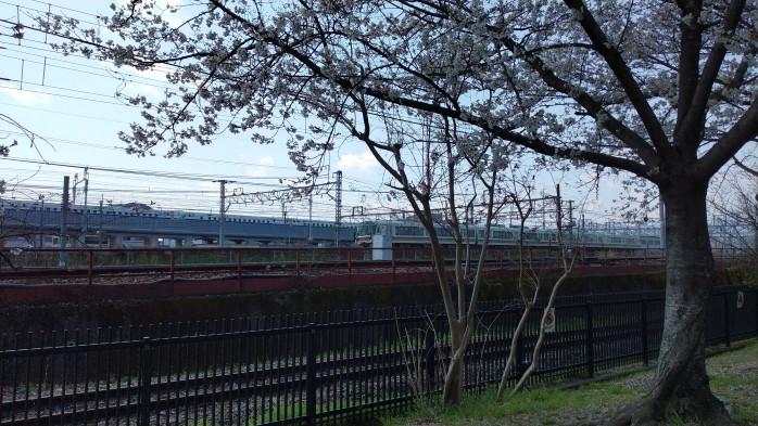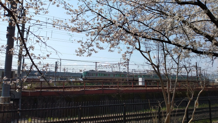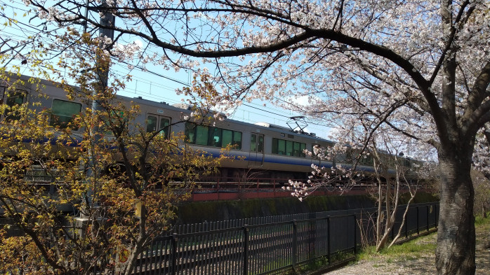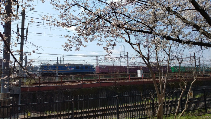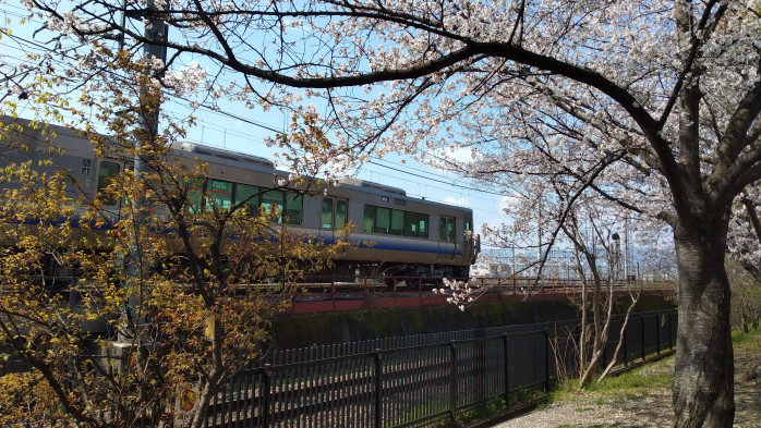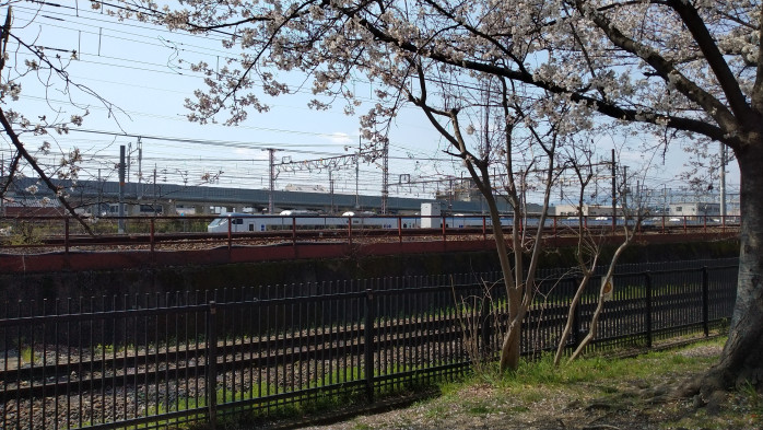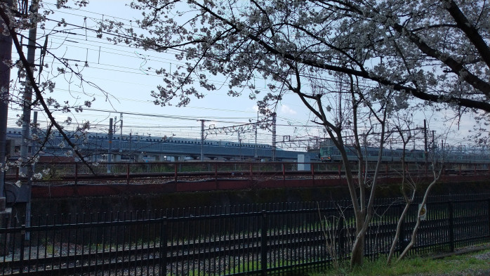 桜を見に行ったら、様々な列車を眺められる丁度いい場所に桜も咲いていました。