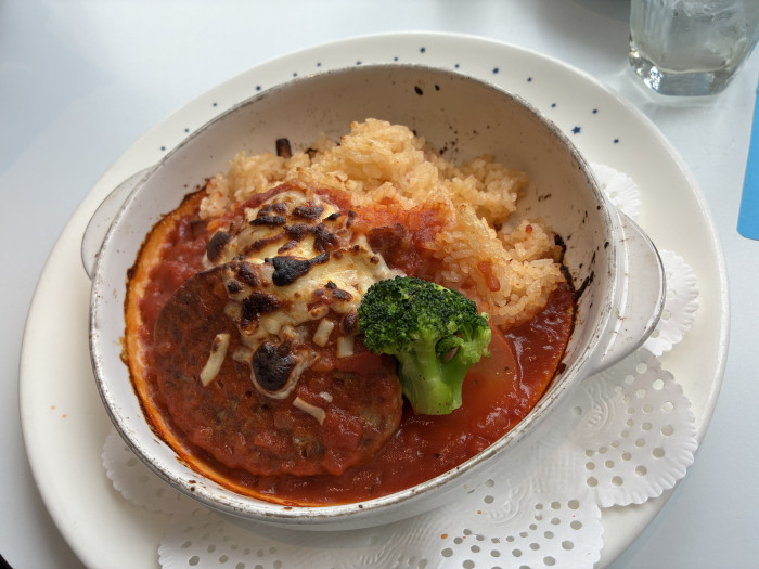 スイーツだけでなく、お食事系も充実。この日はトマトソースのハンバーグドリアを。ボリュームもしっかりあって、とろ〜りチーズとソースの相性が抜群です。