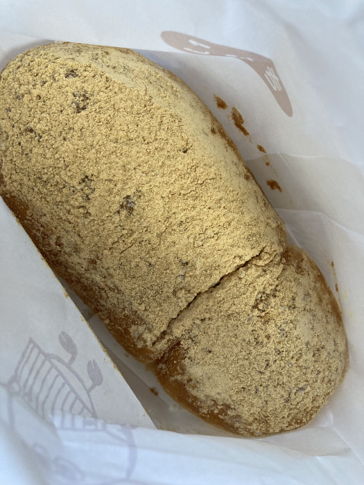 北海道ポテトコロッケ、チキン南蛮タルタルソース、スモークサーモンクリームチーズ、たっぷりチーズチキンカツ、揚げコッペきなこ、を購入しました。中でも、揚げコッペきなこは、給食に出てくる揚げパンとは違って、軽くてふわっとしたパンにたっぷりのきなこがまぶしていて、とっても美味しかったです。どのコッペパンも美味しくて、完全にとりこになりました!