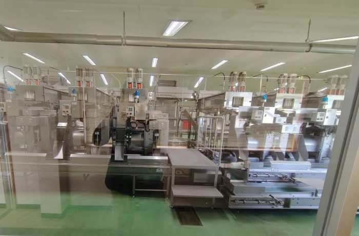 広い構内に音はほとんどない。搾汁機は二階の設備として、ガラス越しに見える位置にあり、洗浄を終えた状態で静かに並んでいた。