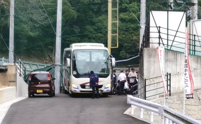 球場の外では、観光バスが坂道をゆっくりと上がり、向きを調整しながら停車する。部員たちは道具をまとめ、バットやボールケースを抱えてバスへと運び込む。片付けを終えると、そのまま乗車し、球場を後にしていく。