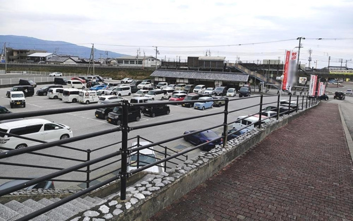 一方で、坂の下にある駐車場では別の催しによる来場者で車が埋まり、人の出入りが続いている。その賑わいがそのまま球場へ上がってくるわけではなく、坂を境にして、球場と駐車場とでは人の流れに違いが生まれている。