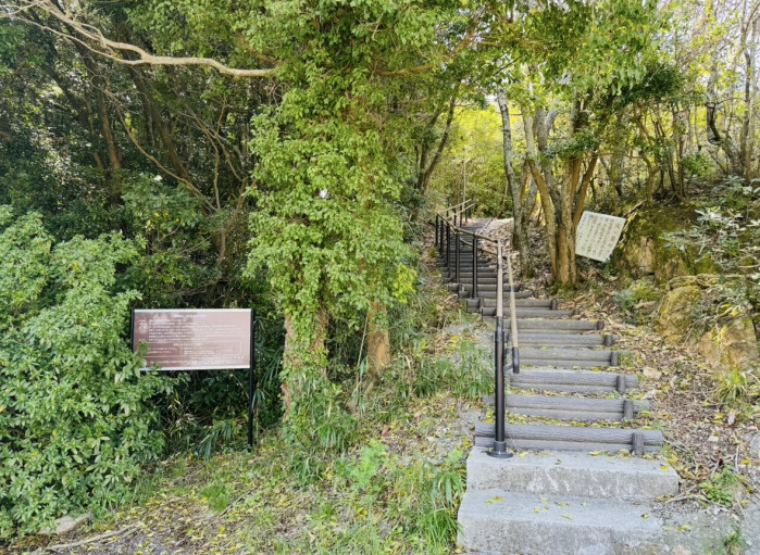 山陽自動車道「赤穂IC」から車で約15分 。赤穂海浜公園の西駐車場に車を止めて海のほうへ上がると、登山口があります。