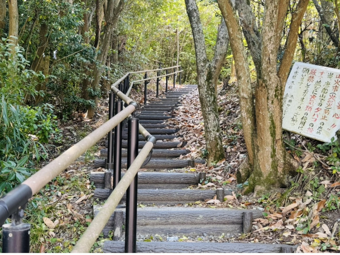 登山口には説明書きの立て看板があります。せっかくなので一読してから登ってみましょう。