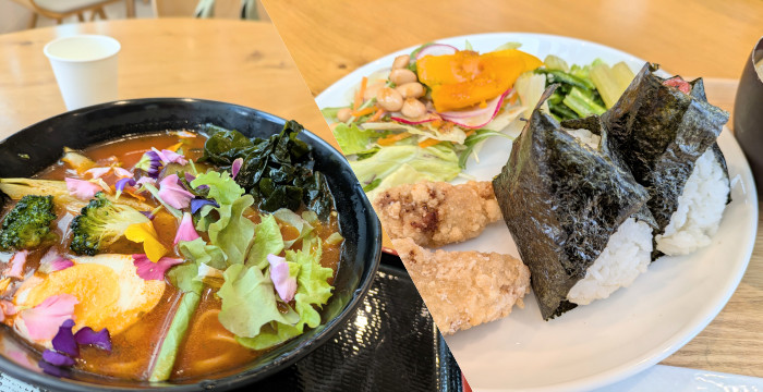 トマトスープのヌードル と にぎりまんま定食にしました。