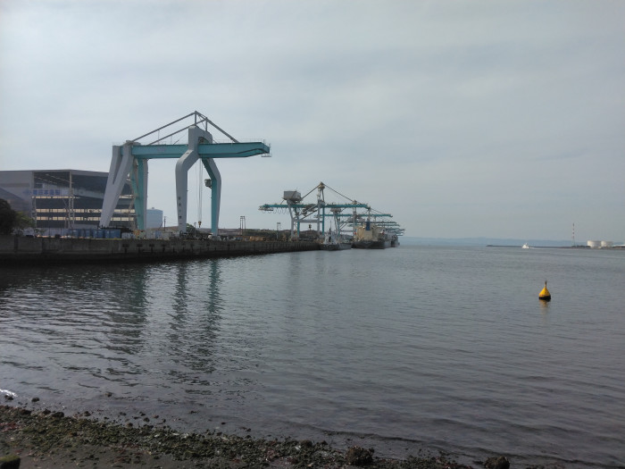 製鉄所、発電所、石油プラントなどが、大分市の海岸沿いには広いエリアにわたって続いています。