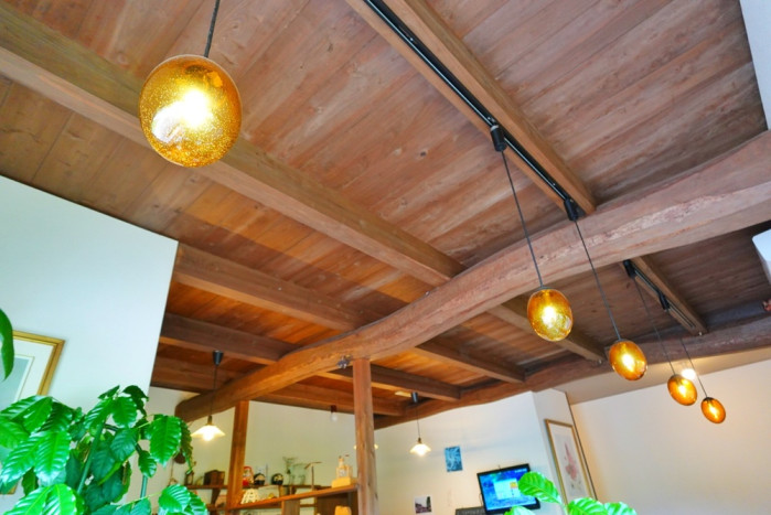 カフェは古民家を活かした佇まいで、目の前にはこじんまりとした駐車場があり、車は3台ほど停められるようになっています。建物に一歩足を踏み入れると、昔懐かしい空気と現代的なセンスが心地よく調和した、落ち着いた喫茶店のような雰囲気が迎えてくれました。