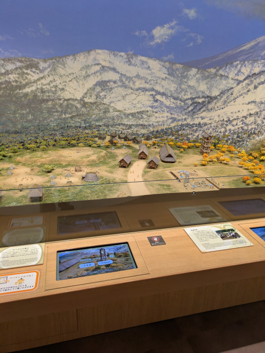 他には縄文時代の生活を再現したミニチュアの展示があり、下のパネルを操作すると、ミニチュアのアップが見られました。