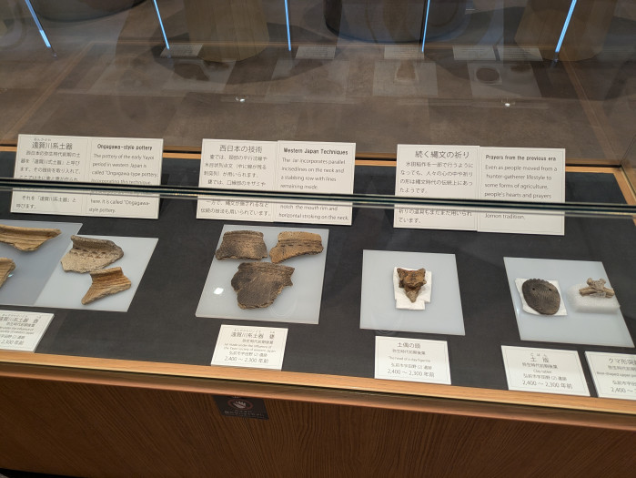 土器や土偶の展示。
