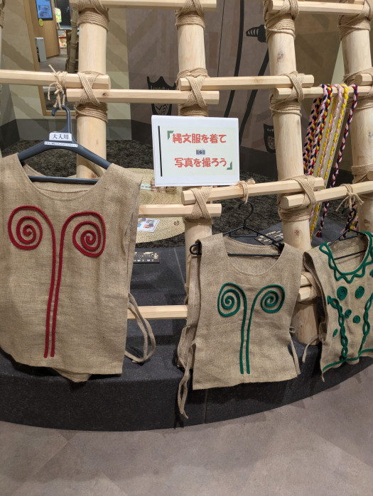 縄文服を着られるコーナーもありました。大人用と子供用があるので家族で縄文人になりきれますね。