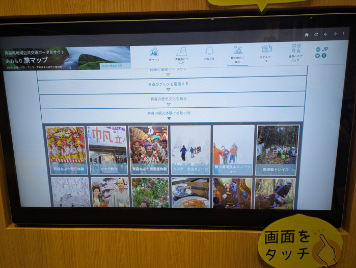 青森の案内をしてくれる案内板がありました。グルメや体験、歴史などカテゴリ別に詳しく案内してくれます。