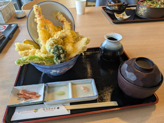 海鮮天丼はとにかくボリュームに圧倒されました。小食の人はちょっと厳しいかもしれません。サクサクで素材の味もしっかりと感じる美味しい天丼でしたが、勢いをつけて食べました。