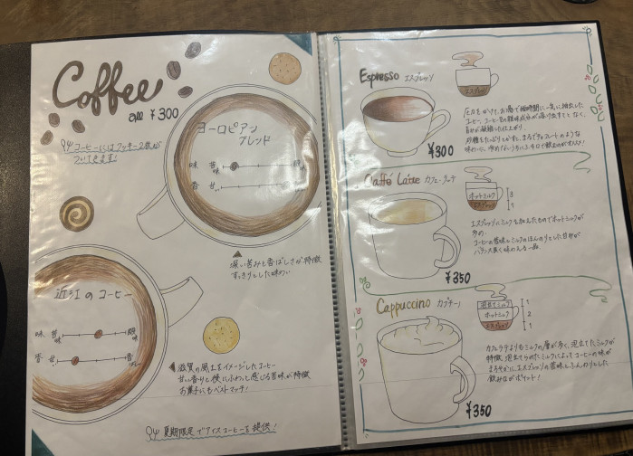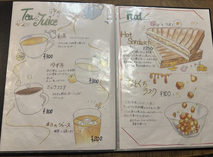 このメニュー表は大学生さんによって手書きで描かれているようで、ほっこりとした温かさを感じます☺️