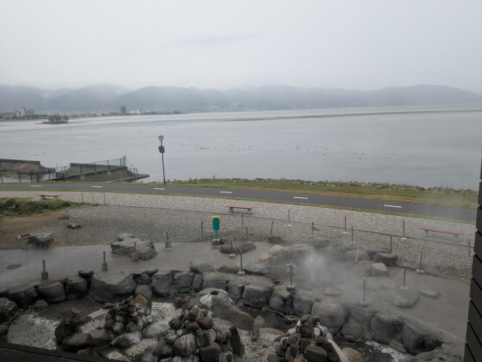諏訪湖間欠泉センターは、諏訪湖目の前にあります。