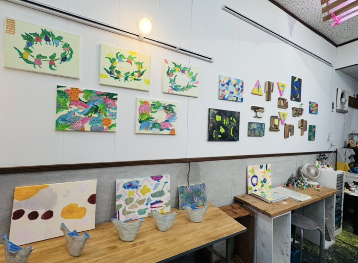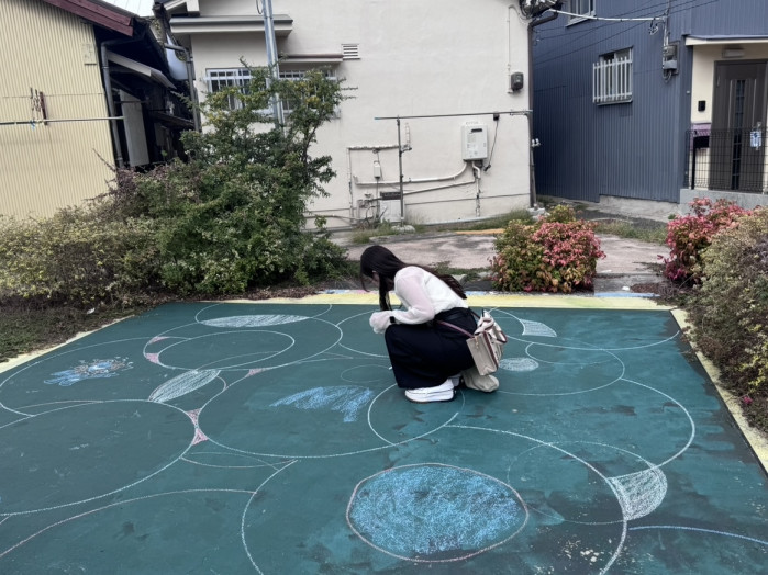 体験型のようなアートも。こちらはチョークが置いてあって、自由に描くことができます。