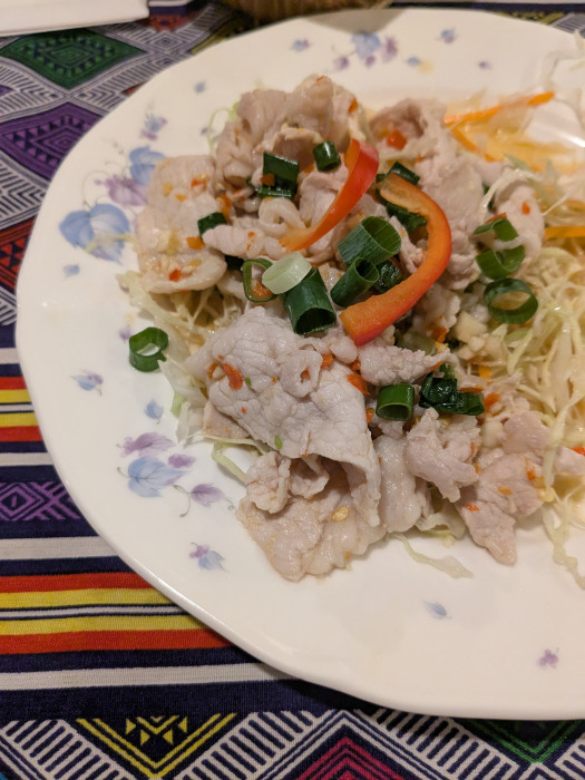 豚しゃぶです。とても辛いので、水がたくさん欲しくなります。