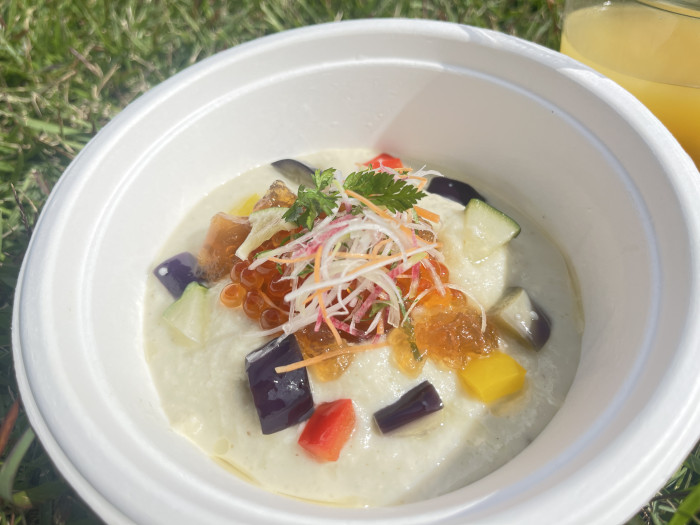 一方、「もんぜん」さんの“ポタージュ仕立て茄子ソーメン”は驚きの新感覚。