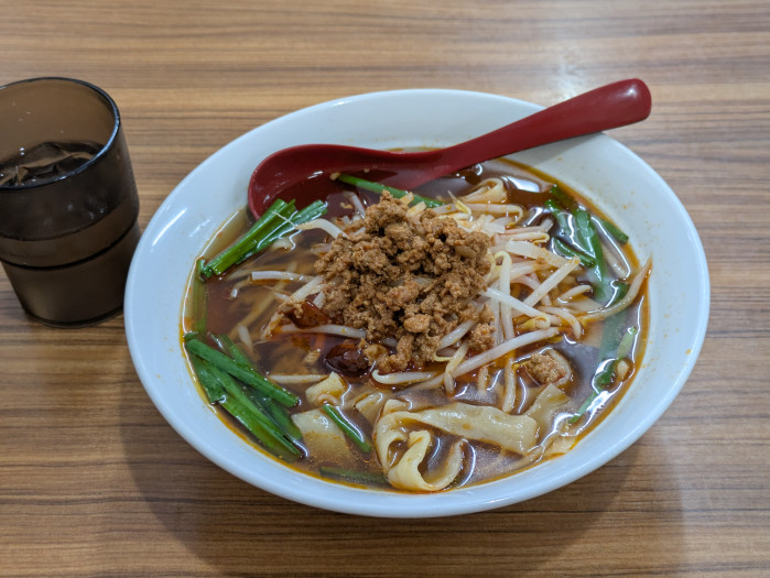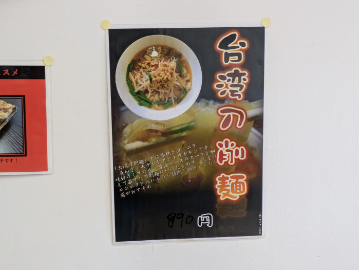 この日は、かねてから店内の写真を見て気になっていた「台湾刀削麺」を注文。モチモチとした平たく削られた麺がスープにほどよく絡み、食べるたびに香辛料の刺激がじんわりと広がります。辛いものが少し苦手な私でも、気づけばスープを飲み干すほどクセになる味わい。香ばしさと辛味のバランスが絶妙で、これぞ台湾屋台の味!と思わせる一杯でした。