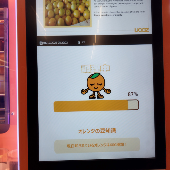 待っている間は映像でマメ知識!オレンジって600種類もあるの?っと思わず突っ込みを入れてしまいました。(笑)
