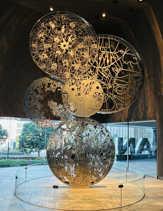 建物のロビーで見つけた、繊細な切り絵のようなオブジェ。