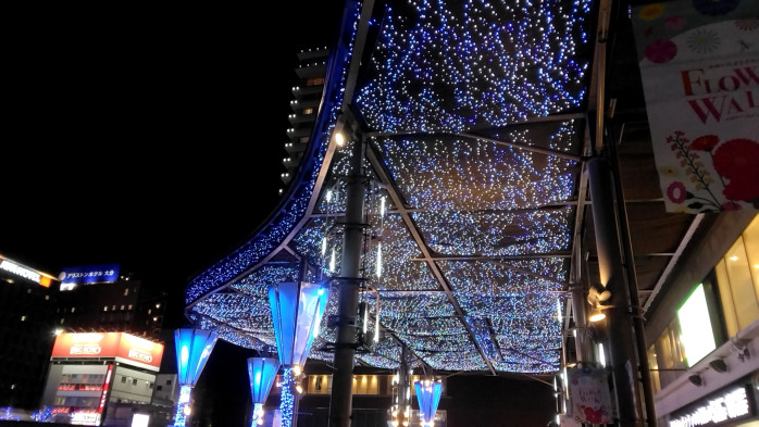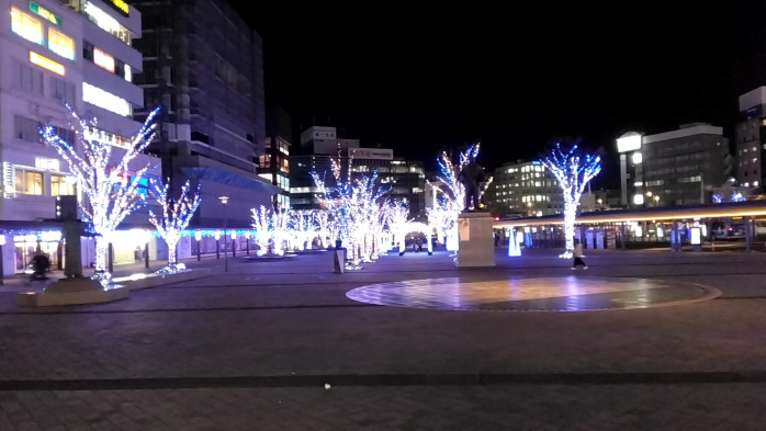 しかし、その時は夜桜が、夜の大分駅前をよりキレイに飾ってくれるでしょう。それまではこのイルミネーションを楽しみたいものです。
