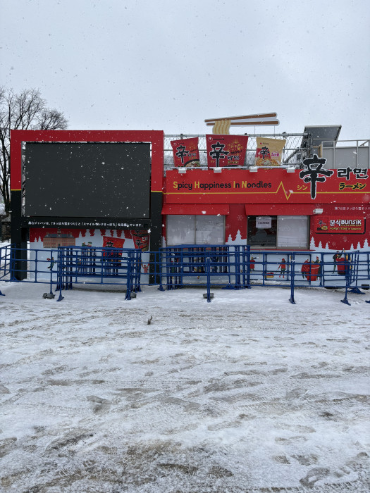 ここ数年人気の辛ラーメンのコーナーは行列が絶えません。