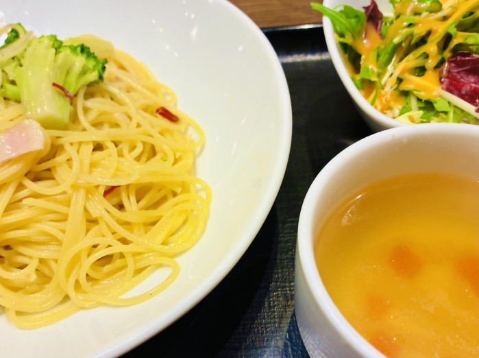 本日のパスタランチ。スープとパスタもついてボリューム満点です☆
