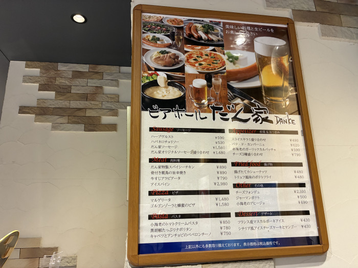 店名の『だん家(DANKE)』はドイツ語でありがとうって意味らしいです!お通し代もかからないし、サービス精神に感謝(ダンケ)!