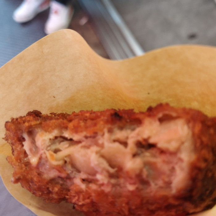 浅草メンチが有名になったのには、その場で食べることに最適だったという説もあります。アツアツを片手に持ち、歩きながら片手で食べれるというのが、有名になるきっかけだったとか。しかしそれだけでなく、中身にも人気の理由が詰まっています。