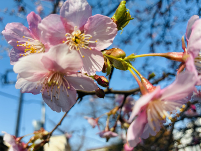 境内に彩りを添える美しい桜。青空に淡いピンク色が映えて、春の訪れを感じさせてくれる瞬間でした。