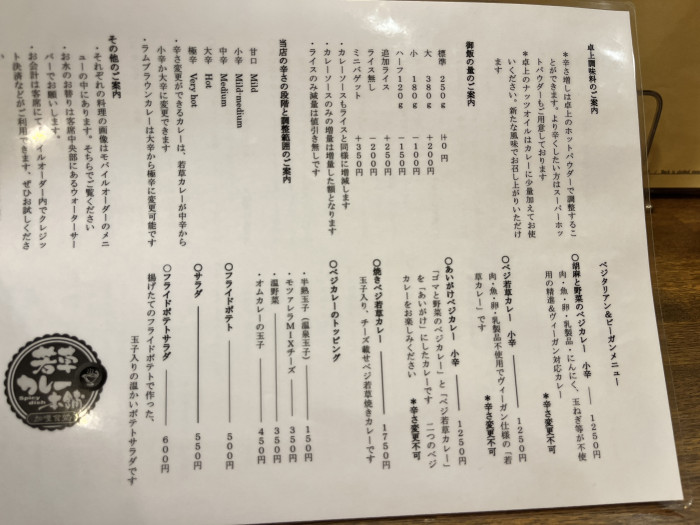 ベジタリアンやビーガン向けの「ベジカレー」メニューもありました。