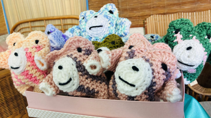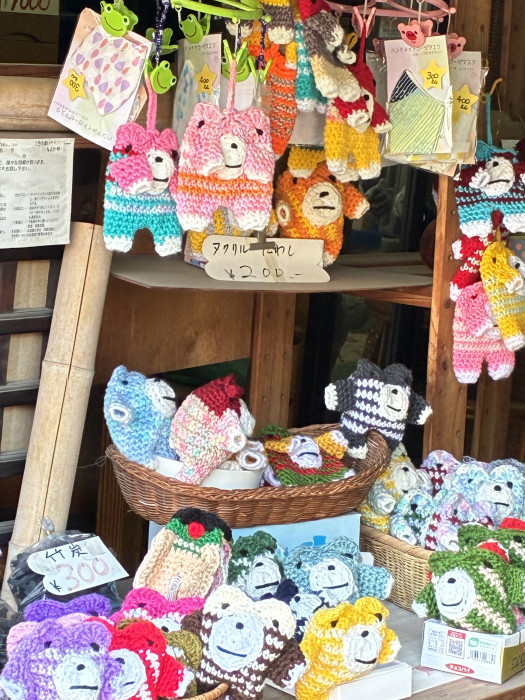 パステルカラーのクマさん(?)たちが、箱の中からこちらを見つめています。癒やし効果バツグン。店主のおばあちゃんの手編みのようです。みんな少しずつ顔が違って、どの子を連れて帰るか迷ってしまいます。