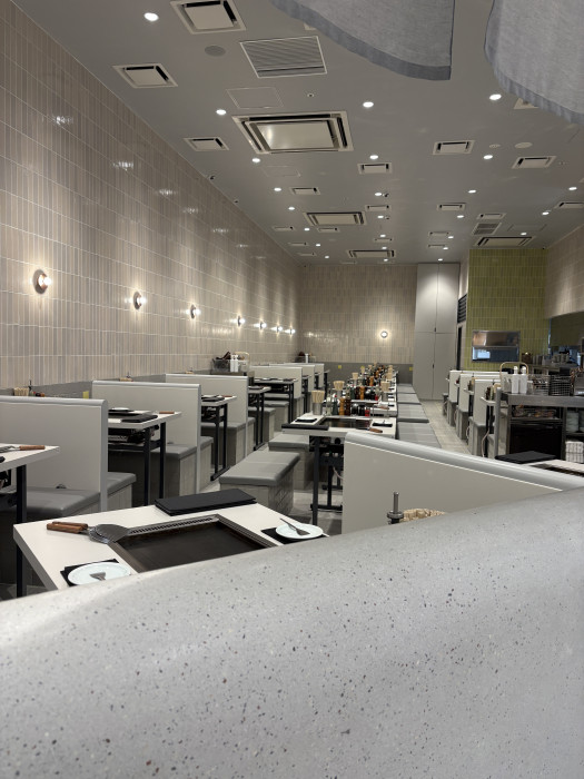 各テーブルに鉄板が設置されているので、ゆったりと食事を楽しめます!