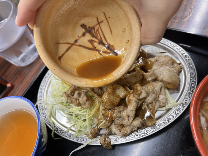 焼き上げられる豚バラは、余分な脂を落としながらも旨みはしっかりキープ。外側は香ばしく、中はジューシー。味付けは甘辛い特製ダレがベースで、ごはんが止まらなくなる危険な一皿です。
