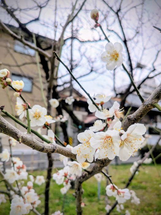 梅の咲き具合はどうかな…とドキドキしながら行くと、早咲きの梅は綺麗に咲いていました!
