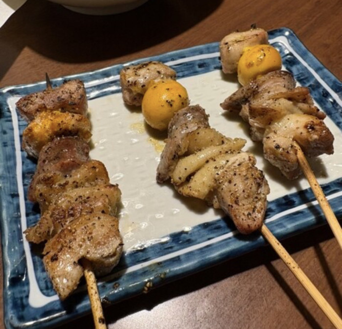 モツ串と呼ばれており、鶏の様々な内臓部位(モモ、ムネ、ランカン、皮、キンカン)を一つの串にまとめて焼いた焼きとりで、美唄市の郷土料理も楽しめちゃいます。