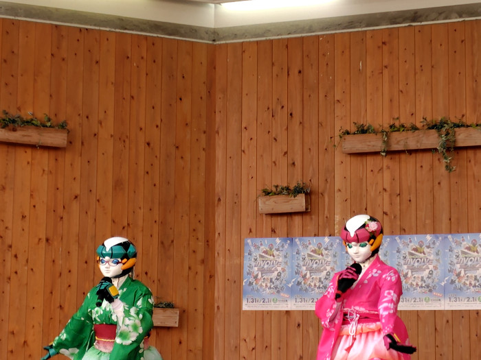 例えば写真のキャラクターは大阪で活動しているロボットアイドル・にょロボてぃくすです。
