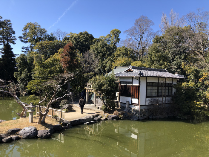 池の中に浮かぶお社は、九条池にかかる高倉橋からも見えます。遠目に見ても近くで見ても、とても美しい風景でした。