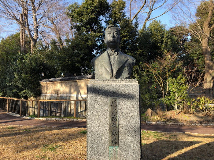 公園内にある像は、尾上松之助像。