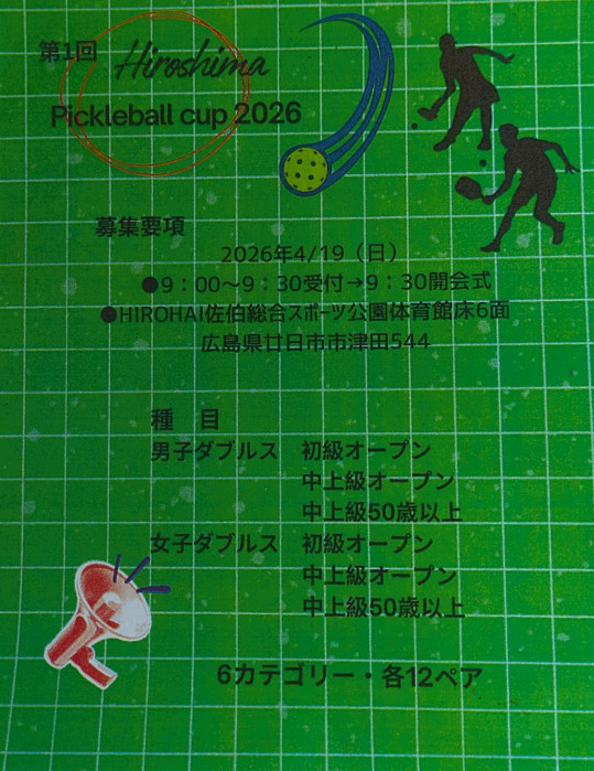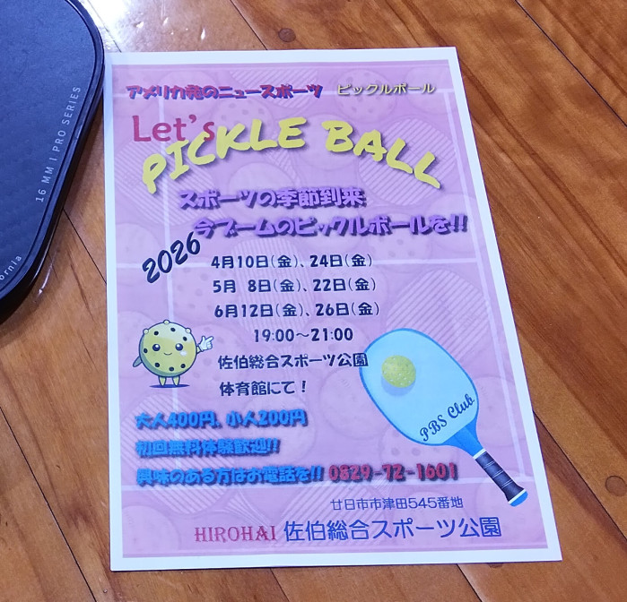 電話:0829-72-1601ピックルボール体験日(4月)