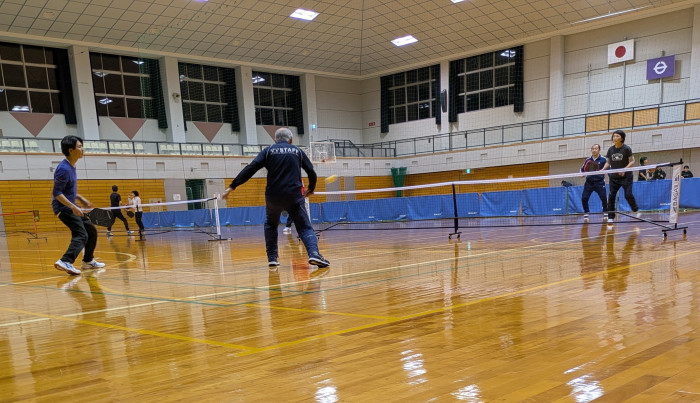 初めてプレーを見たときは、「テニスのフォームに近いのかな?」「ラケットは卓球みたい?」「コートの広さはバドミントンに似ている?」と、いろいろなスポーツが頭に浮かびました。まさに複数の競技の要素が合わさったような印象で、どんな感覚なのか気になり、思い切って体験してみることにしました。