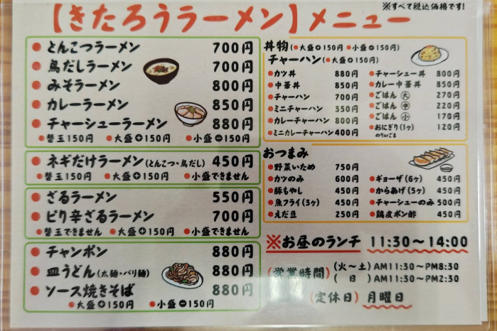 メニューは様々なラーメン、そしてご飯もあるのでお腹いっぱい堪能できます。