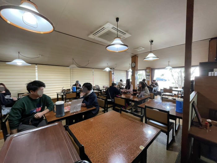 店内は1階は畳の椅子席がほとんどで、2階は宴会ができる畳席になっていました。椅子席を好まれるお年寄りにも人気の理由です。