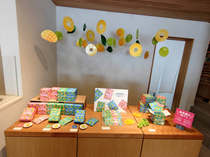 もち米とこんにゃくで作った可愛い和グミのコーナーが目を引きます。