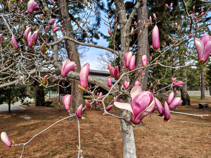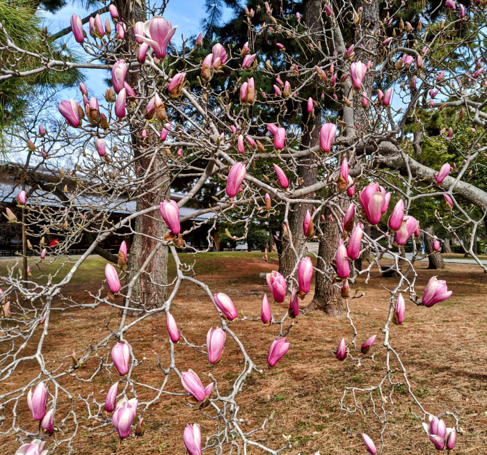 前回前々回と京都御苑の桜を紹介しましたが、この時期は桃や木蓮も見ごろとなっています。
