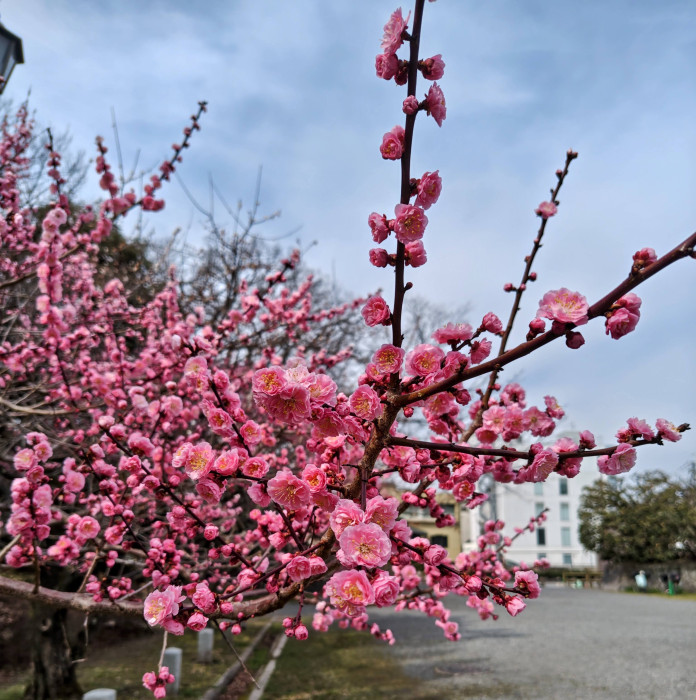 春の京都御苑では、梅や蝋梅から始まり、椿・桃・木蓮に桜と春を満喫できる憩いの公園です。