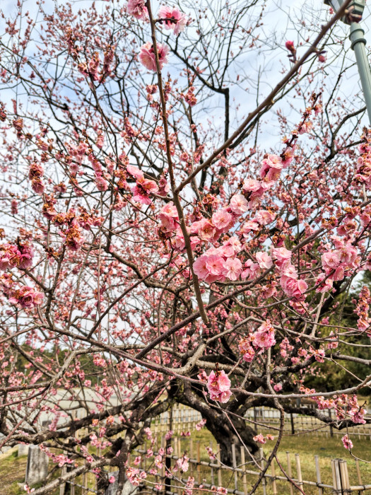 最後は京都御苑の南「九条邸跡」の近くにある「黒木の梅」です。