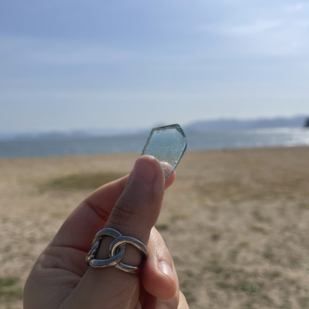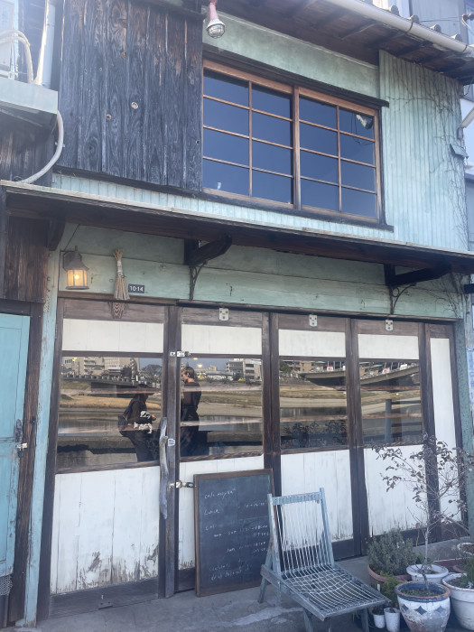 2階の窓側の席からはこのように旭川の景色が眺められます。周りにある小物やグラスが素敵でした。