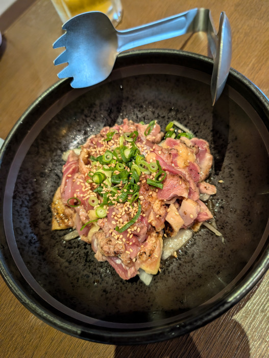 地鶏のたたきは、ひと口食べるとプリッとした弾力。