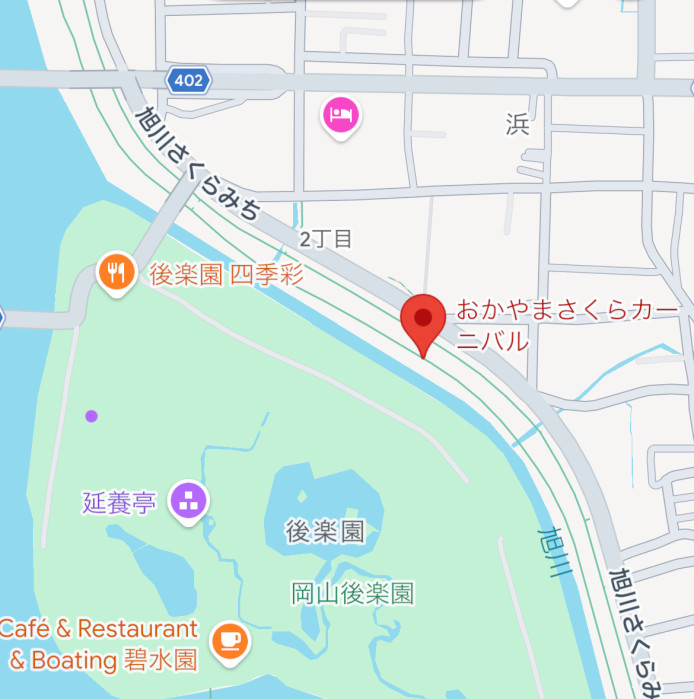 さて、後楽園の東側にある旭川東岸河川敷では毎年「岡山さくらカーニバル」が開催されます。